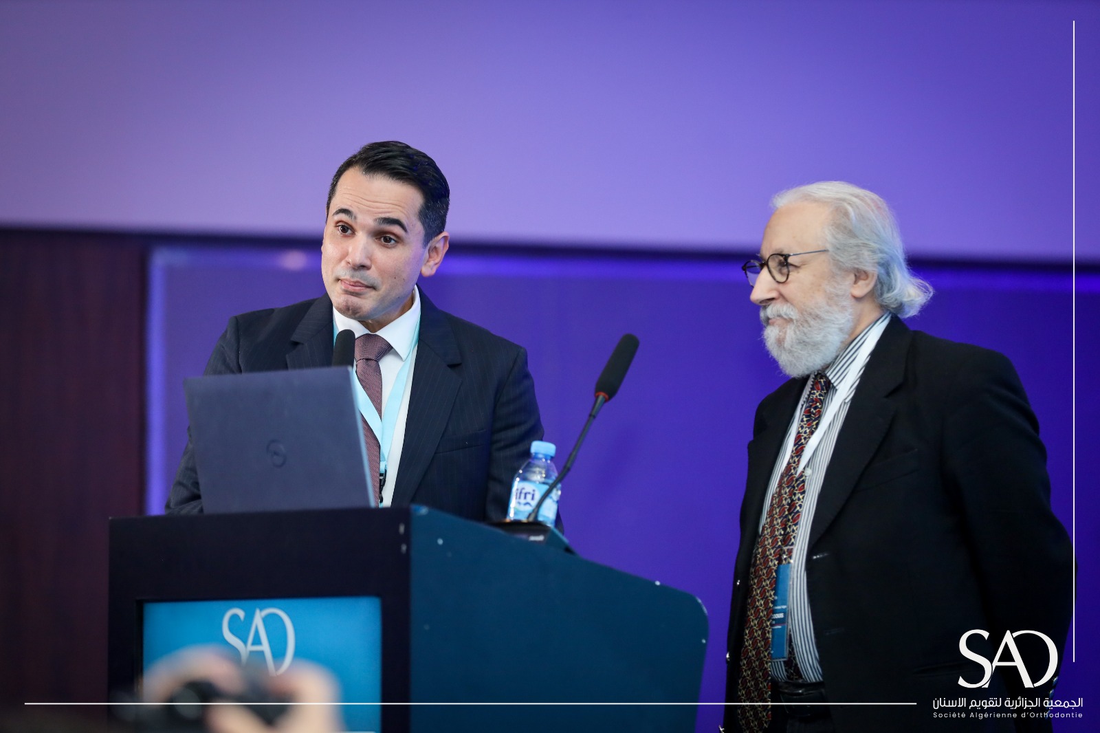 Conférence Institut d’Archéologie, Université 2 Alger. Le directeur de l’Institut Mr. Meftah et le directeur de la scolarité remettant une attestation