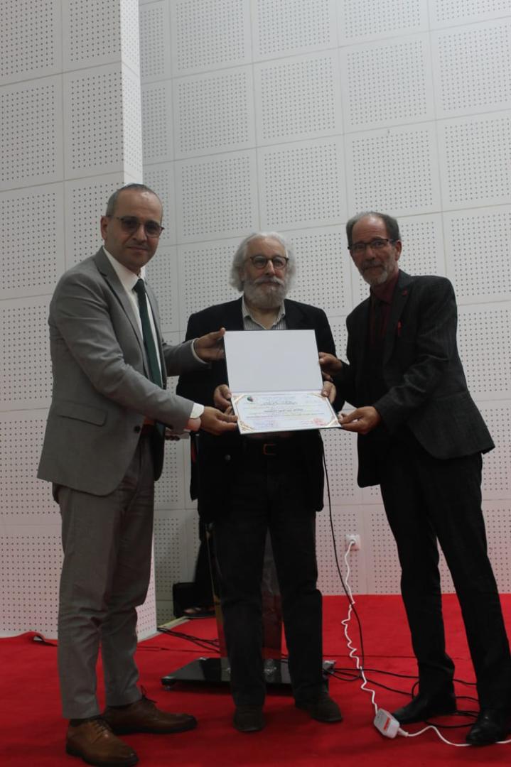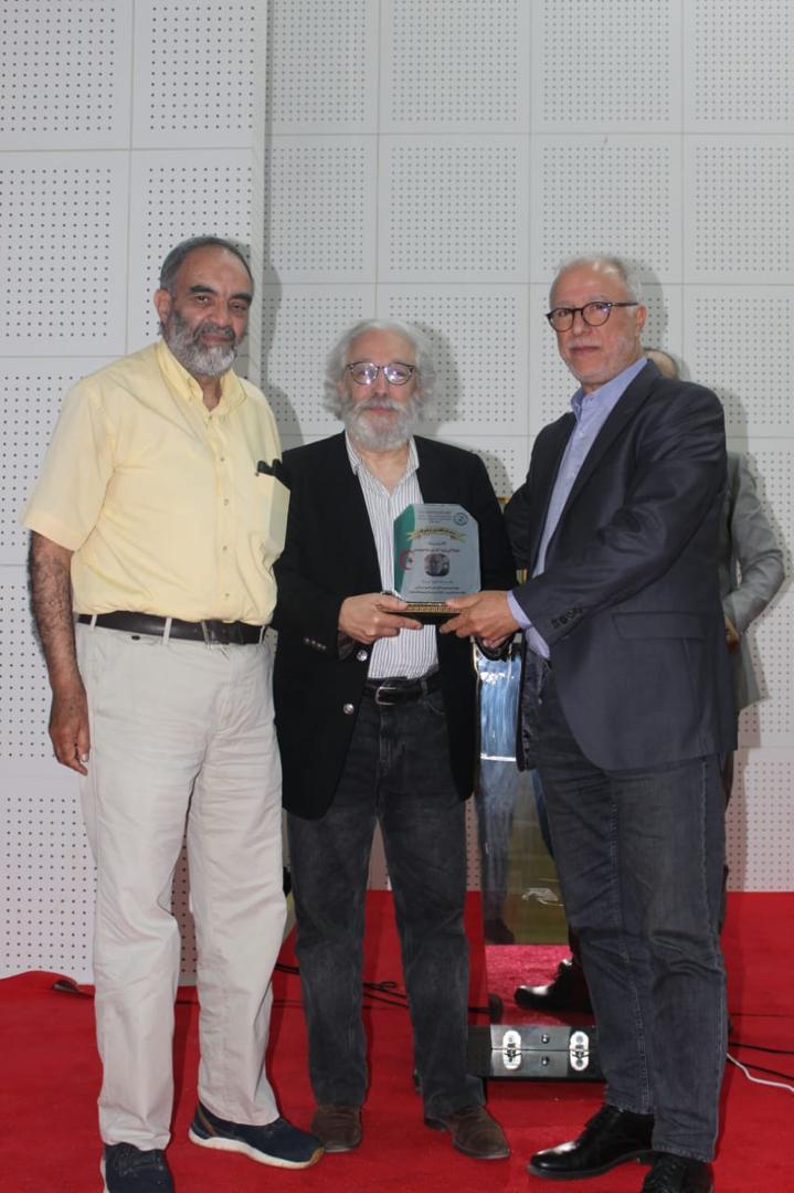 Conférence présentée au Musée National du Bardo, Alger, le directeur Zoheir Harrichane remettant un trophée et une attestation