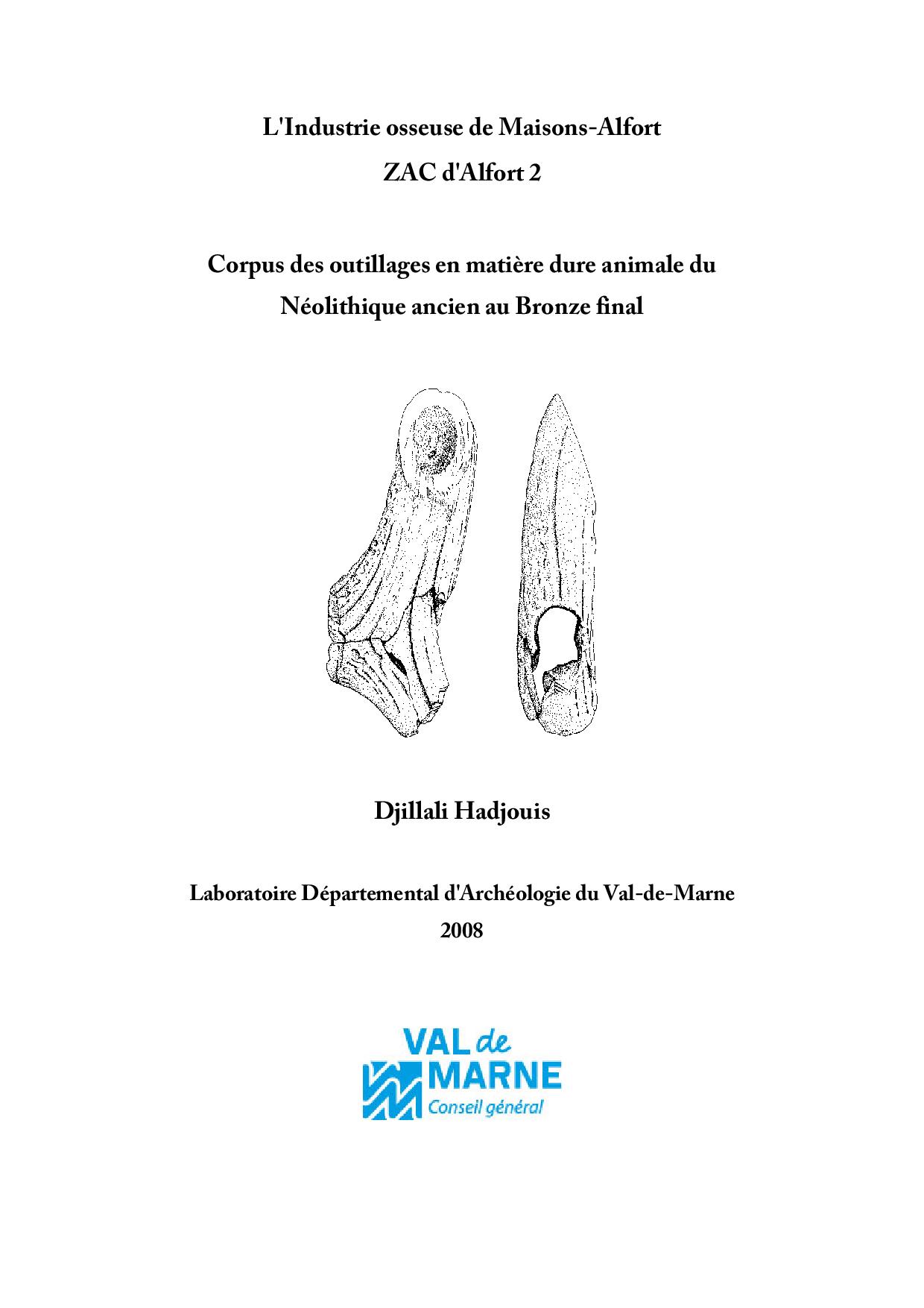 L’étude de l’industrie osseuse d'Alfort 2 est riche de plus de 200 outils en os et bois de cervidés et d’environ 1150 déchets de taille. Ce corpus de l’outillage en matière dure animale largement diversifié représente actuellement l’un des plus importants artisanats du Néolithique et de l’Age du Bronze du Bassin parisien. Une grande palette des outils de la vie domestique de ce site de l'interfluve Seine-Marne est représentée, allant des outils tranchants sur os aux outils pointus, en passant par les outils perforés, mousses et autres emmanchements. L’outillage aménagé sur les bois de cerf élaphe dépasse l’utilisation classique des emmanchements de gaine de haches. On retrouve des objets en bois de cervidés utilisés à des fins agricoles ou autres fonctions comme certains biseaux ou pics. Les techniques de débitage reposent également sur des procédés artisanaux variés et connus ailleurs : flexion, percussion directe et indirecte, abrasion, entaillage, perforation, évidage … Bien que les outils soient bien finalisés, la fonction de certains d’entre eux est restée imprécise en raison du peu ou pas d’exemples similaires dans d’autres sites. En effet, la perforation diaphysaire unique et centrale des premières phalanges d’aurochs et de bœufs ne nous fait pas penser aux traditionnels sifflets. En tous cas, la perforation par entaillage de certaines phalanges laisse penser à un récepteur d’outil plutôt qu’à une autre fonction précise. De même que l’usure avancée des bords de palettes d’omoplates de grands vertébrés ou de moyenne taille pencherait vers une utilisation de ces objets comme ustensile agricole (pelle, bêche ?).