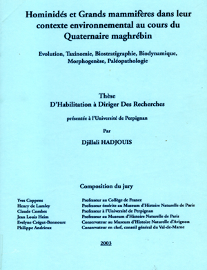Comme l'indiquent le titre et le sous-titre de cette HDR, toutes les données contextuelles de la faune des vertébrés et des hommes récoltées depuis 25 années de recherches ont permis une synthèse régionale sur l'ensemble du Quaternaire. Concernant les Hominidés, une étude inédite sur les hommes d'Afalou Bou Rhummel, basée sur une cinquantaine de crânes de la collection de l'Institut de Paléontologie Humaine de Paris a livré une nouvelle lecture architectonique crânio-faciale et occlusale par téléradiographie. Elle met en lumière, la biodynamique et la morphogenèse de la croissance crânio-faciale, les asymétries, les décalages occlusaux et les maladies bucco-dentaires.