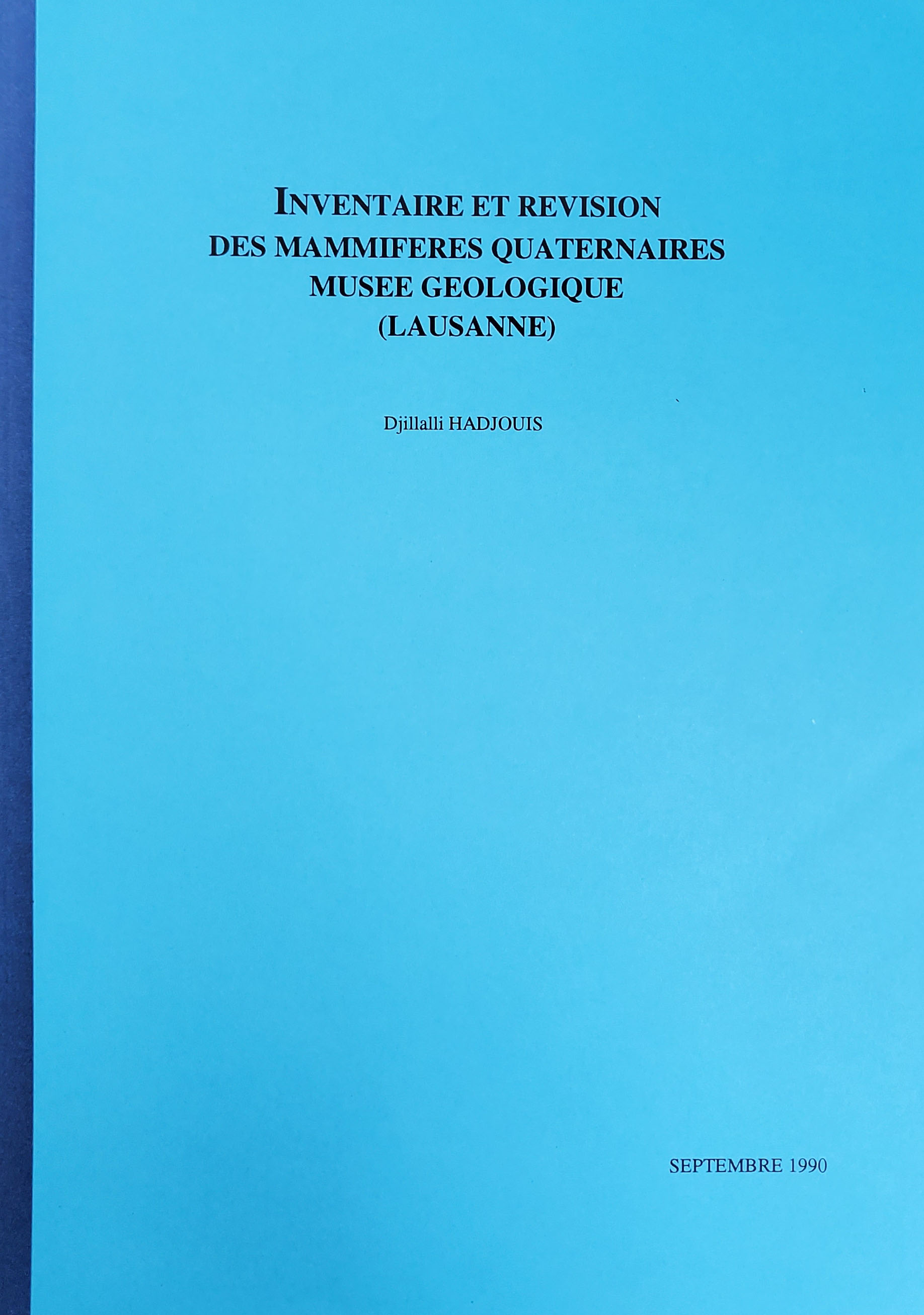 Dans le cadre de l'exposition "Le Quaternaire vaudois", un inventaire et une révision des faunes de Vertébrés ont été réalisés au musée géologique de Lausanne (Suisse). La révision des espèces a concerné les stations situées au bord du lac Léman, du Lac de Joux et du lac de Bret, ainsi que dans les carrières et les tourbières. A noter la présence de squelettes entiers d'aurochs, d'élans et d'un mammouth laineux (Direction Aymaud Baud).