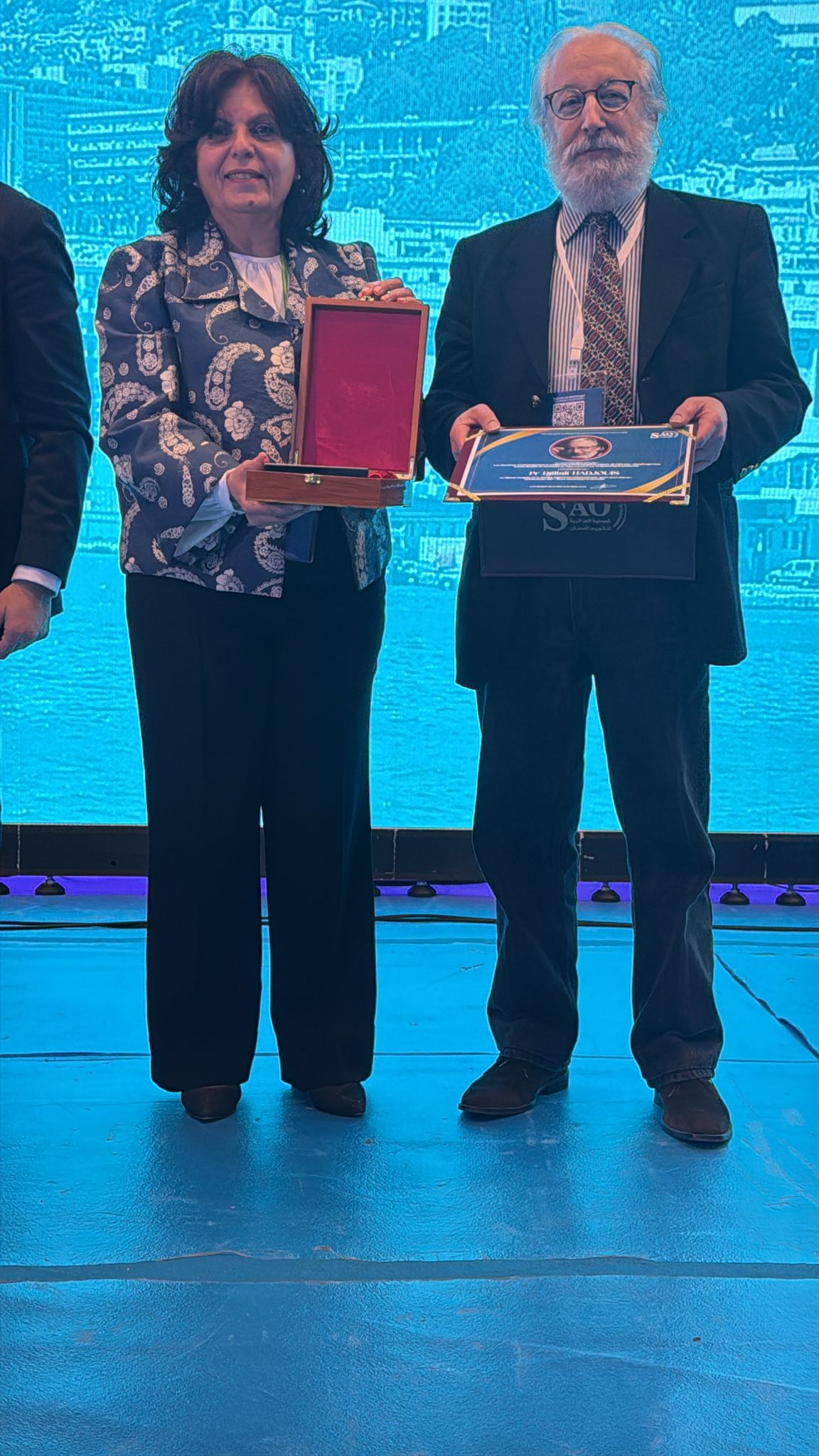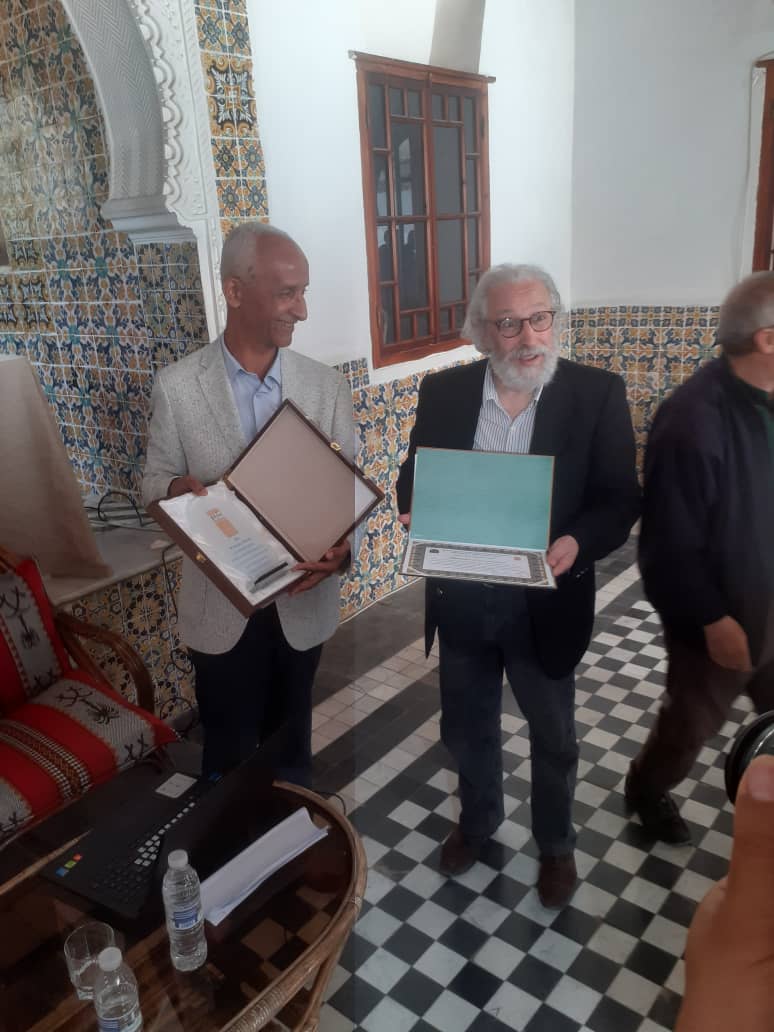 Conférence présentée au Musée National du Bardo, Alger, le directeur Zoheir Harrichane remettant un trophée et une attestation