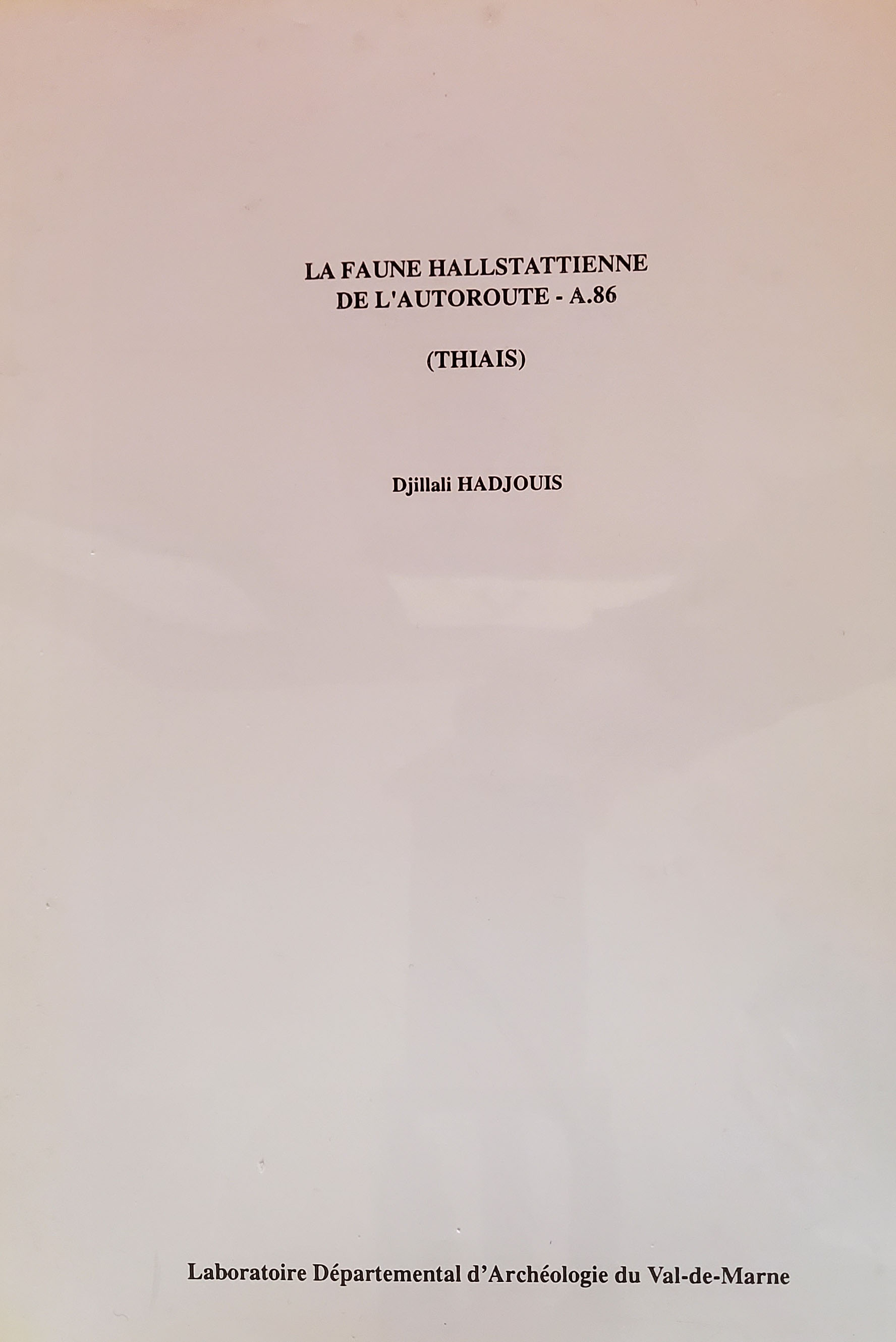 Lors de la construction du tracé de l'autoroute A.86 dans la commune de Thiais, le Laboratoire Départemental d'Archéologie du Val-de-Marne avait effectué une série de prospections et de sondages archéologiques. Une fouille de sauvetage a mis en évidence une trentaine de structures dont cinq d'entre elles, toutes du Premier Age du Fer, ont livré du matériel faunique, humain, céramique et carpologique. Ce site correspond à une occupation rurale dont les espèces faunistiques et carpologiques (blé, orge, millet) illustrent une orientation vers des taches essentiellement agricoles (stockage de denrées alimentaires, ensilage) et vers un élevage ovicaprin, porcin et bovin.