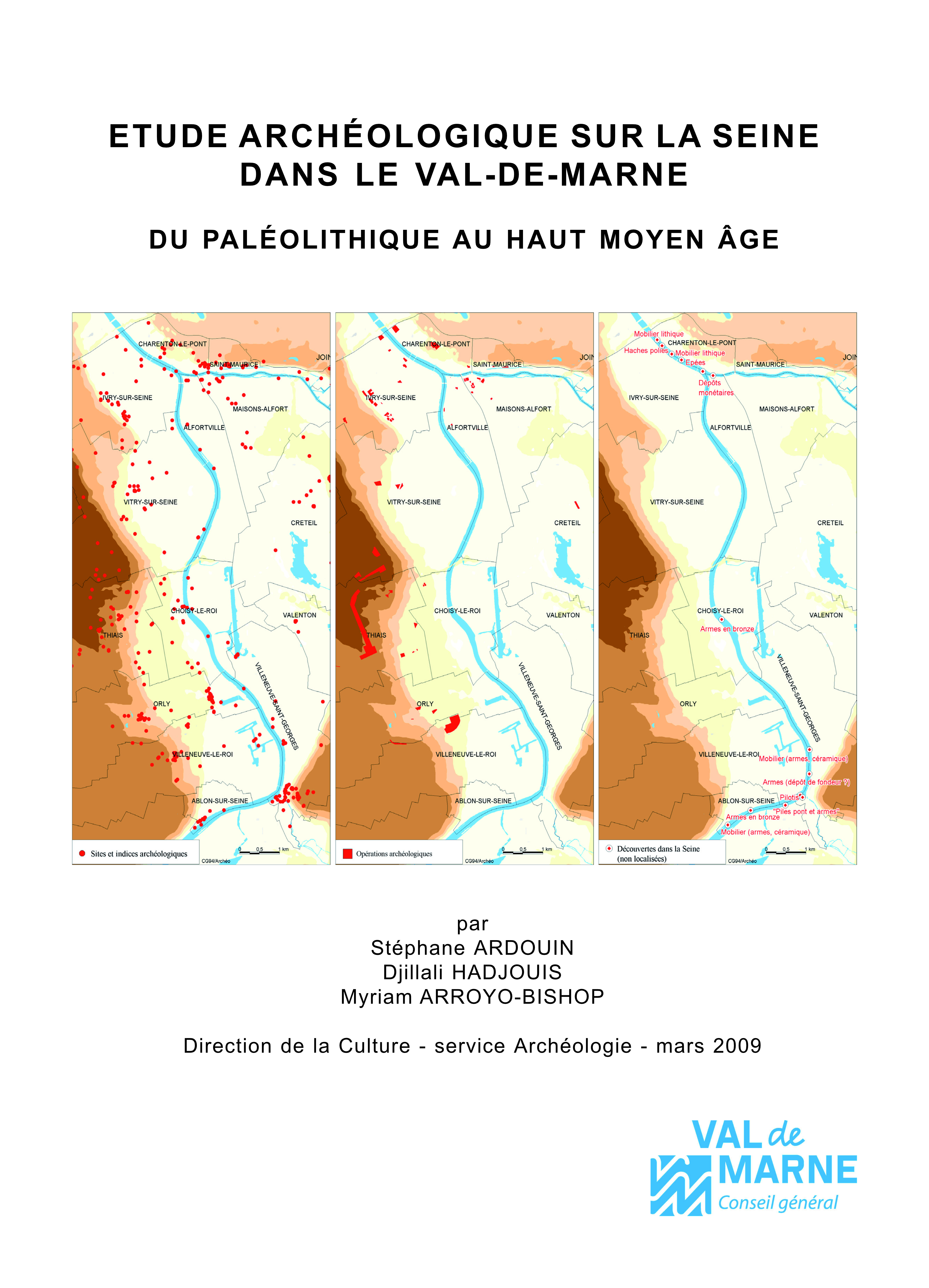 Premier véritable travail de recherche sur les sites archéologiques du Val-de-Marne en relation avec la Seine et la confluence Seine-Marne, depuis le Paléolithique moyen jusqu'aux époques modernes. Les périodes, les cultures, les occupations chrono-culturelles et les diverses activités artisanales et domestiques sont présentées dans leurs contextes paléo-environnementaux. Les sites les plus documentés sont Maisons-Alfort, Ivry-sur-Seine, Alfortville, Vitry-sur-Seine, Choisy-Le Roi, Valenton, Thiais, Créteil, Orly, Villeneuve-Le Roi ...