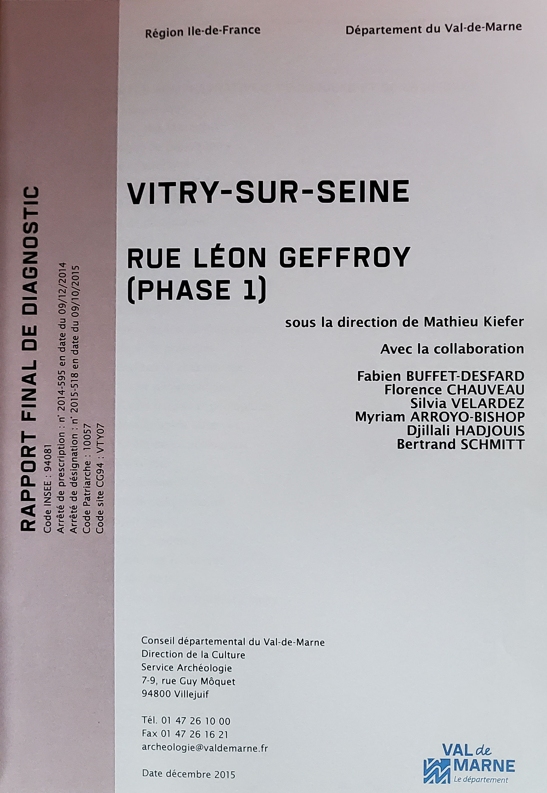Djillali Hadjouis, 2015. Les restes fauniques, In. Mathieu Kiefer, Vitry-sur-Seine, rue Léon Geffroy (phase 1), rapport final de diagnostic, service archéologie, conseil départemental du Val de Marne.